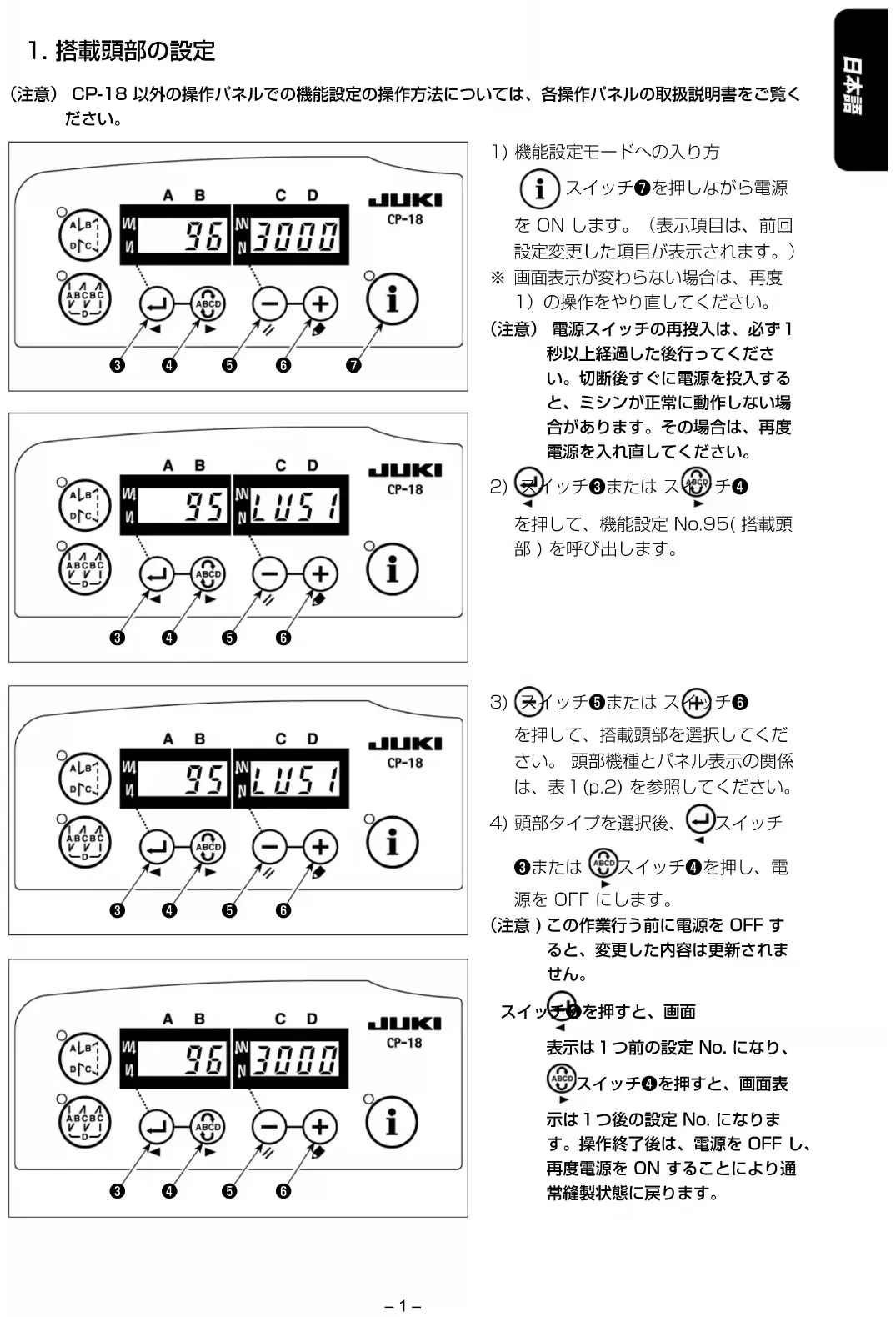 を押して、搭載頭部を選択してくだ さい。 頭部機種とパネル表示の関係 は、表1(p.2) を参照してください。