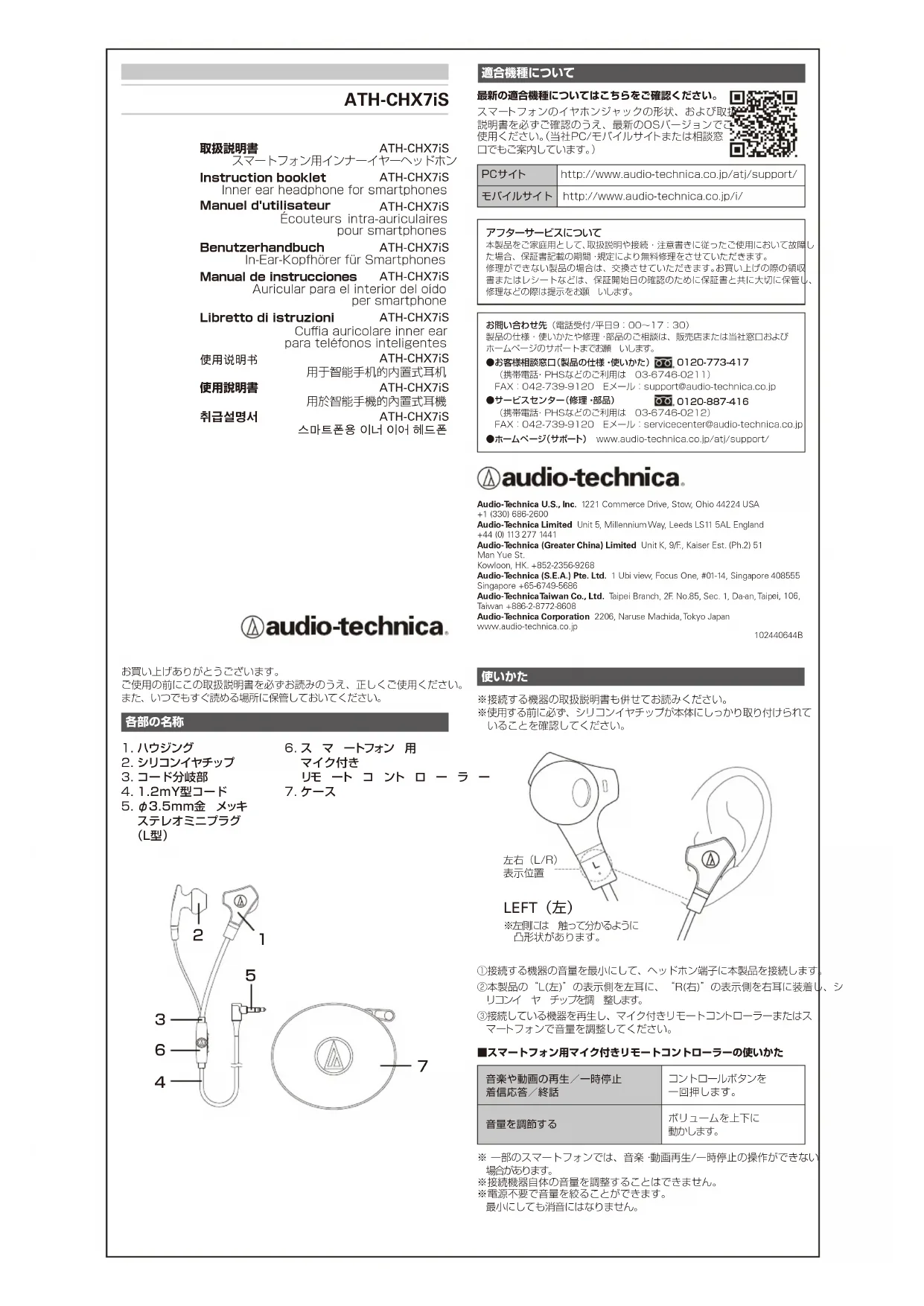 デバイスのマニュアルを無料で見つける ATHCHX7iS AUDIO TECHNICA PDF形式.