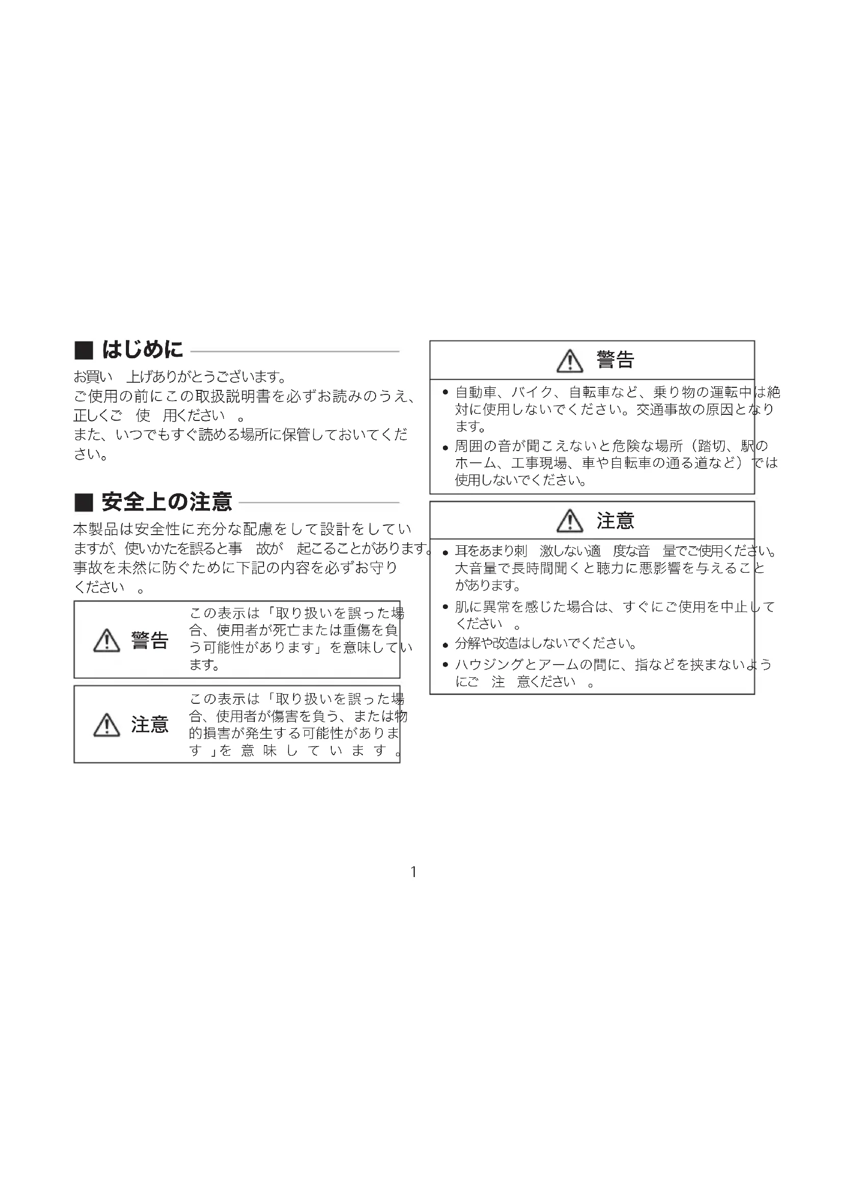 周囲の音が聞こえないと危険な場所(踏切、駅の ホーム、工事現場、車や自転車の通る道など)では 使用しないでください。
