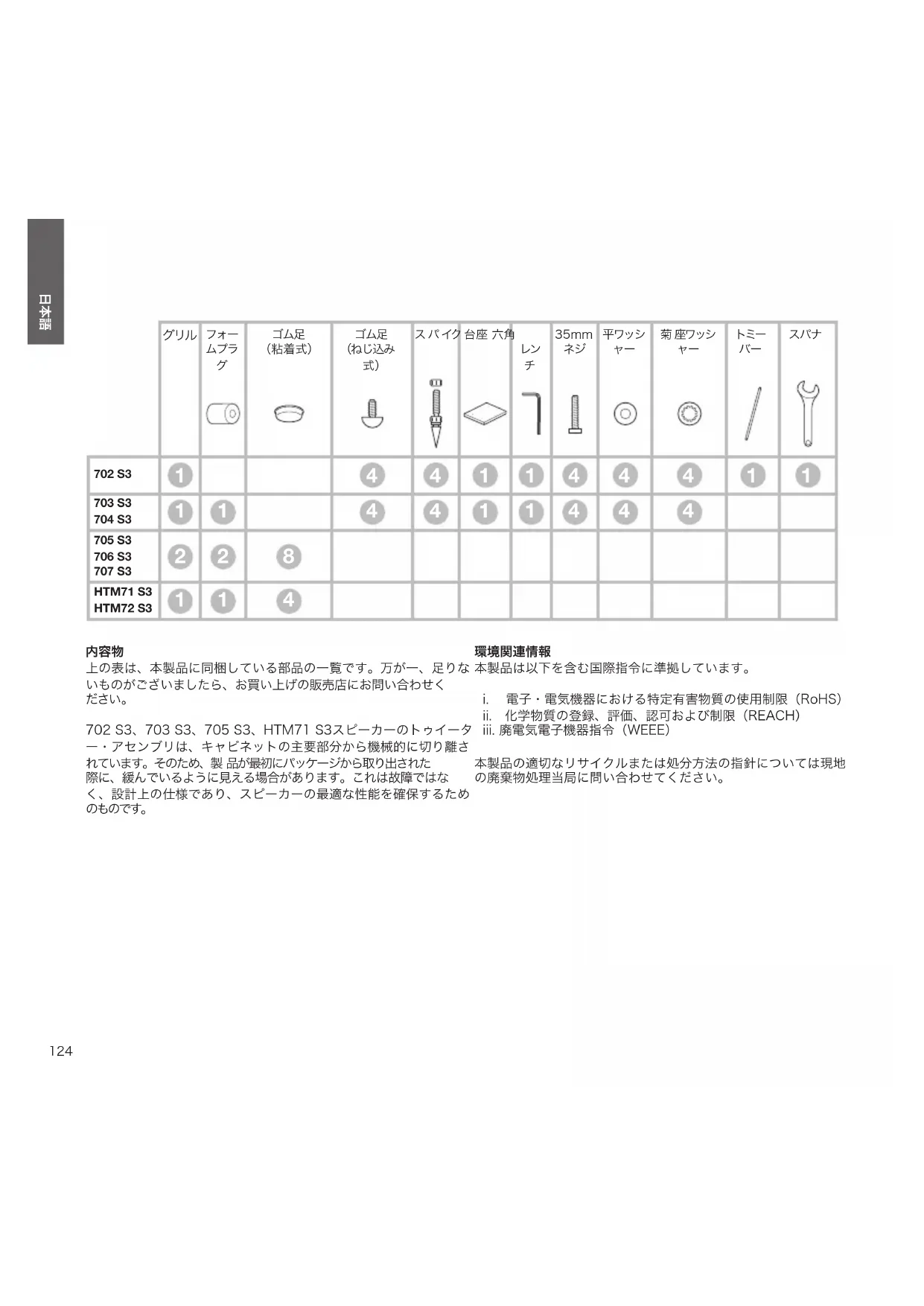 702 S3 / 703 S3 / 704 S3 702 S3、703 S3、704 S3は床置き専用です。適切な安定性を 得るために、必ず付属の台座を取り付け、付属のスパイクまたはゴ ム足を使ってスピーカーが 床にしっかりと立っていることを確 認し