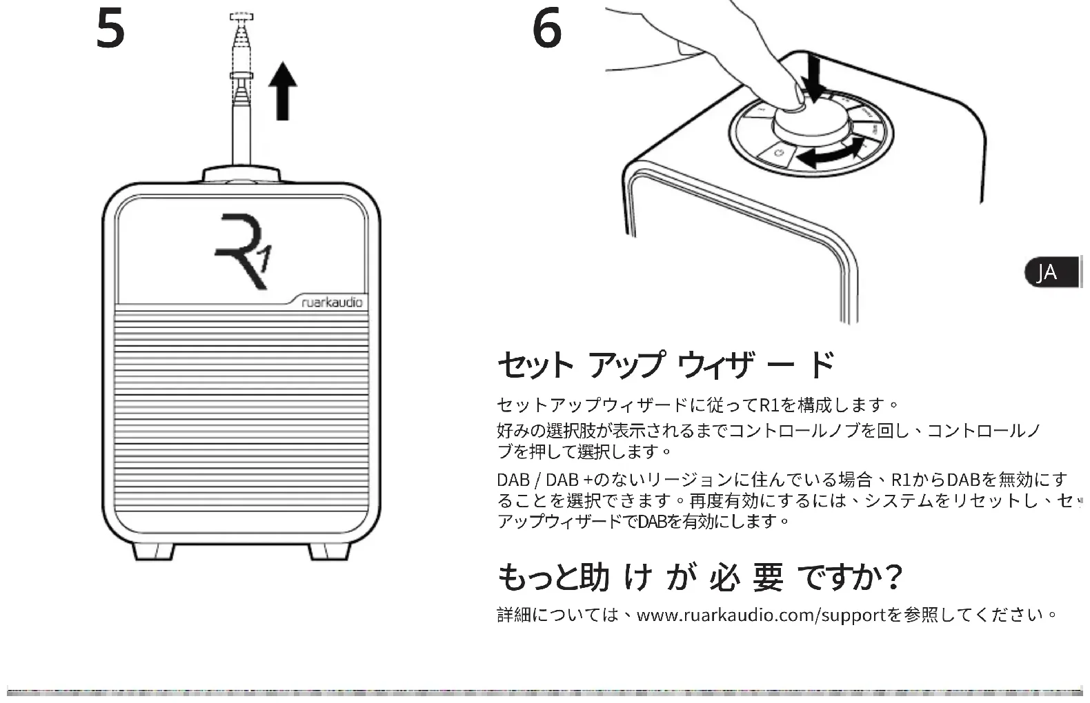 本製品のヘルプについては、当社ウェブサイトの顧客サポ ートページにあるFAQを参照してください。 詳細情報は、 www.ruarkaudio.com/support をご覧ください。