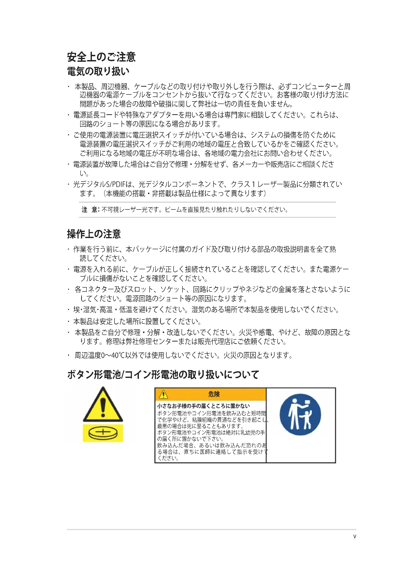 注 意: 不可視レーザー光です。ビームを直接見たり触れたりしないでください。 ボタン形電池/コイン形電池の取り扱いについて
