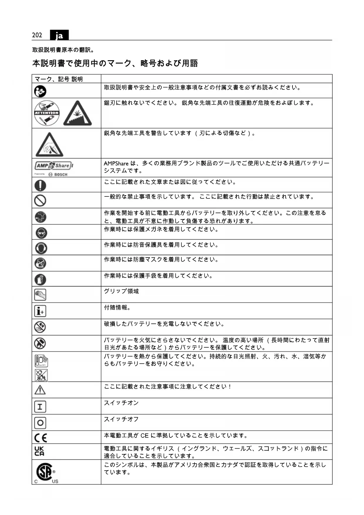 本バットリ一は、AMPShare パートナ一製品とみ併用てくだい。AMPShareのマークが付た18V ビットリ一は、以下の製品と完全に互換いたします: