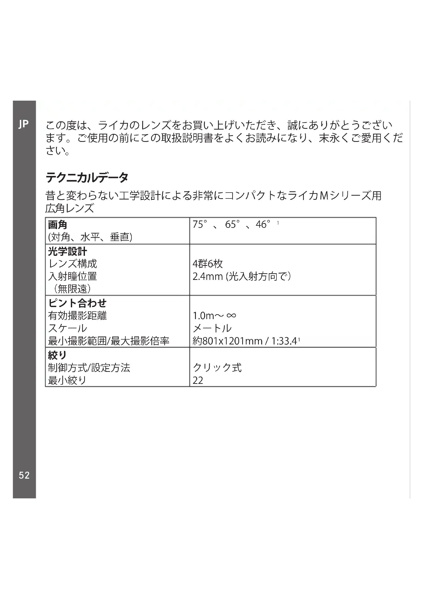 この度は、ライカのレンズをお買い上げいただき、誠にありがとうござい ます。ご使用の前にこの取扱説明書をよくお読みになり、末永くご愛用くだ