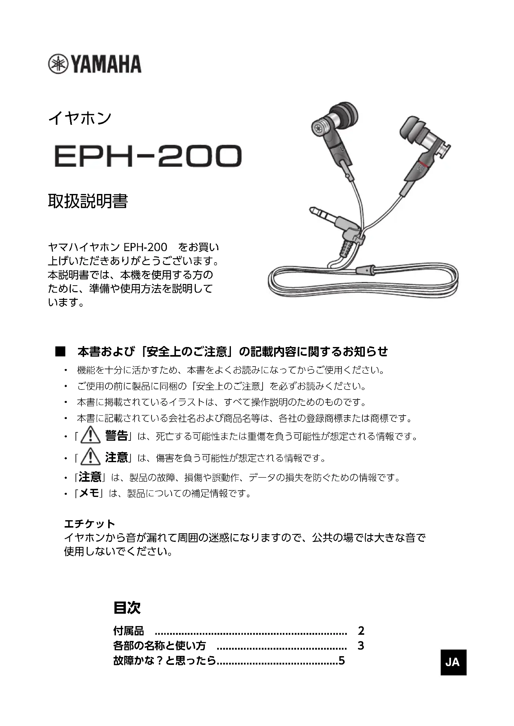 EPH200 - イヤホン YAMAHA - 無料のユーザーマニュアル