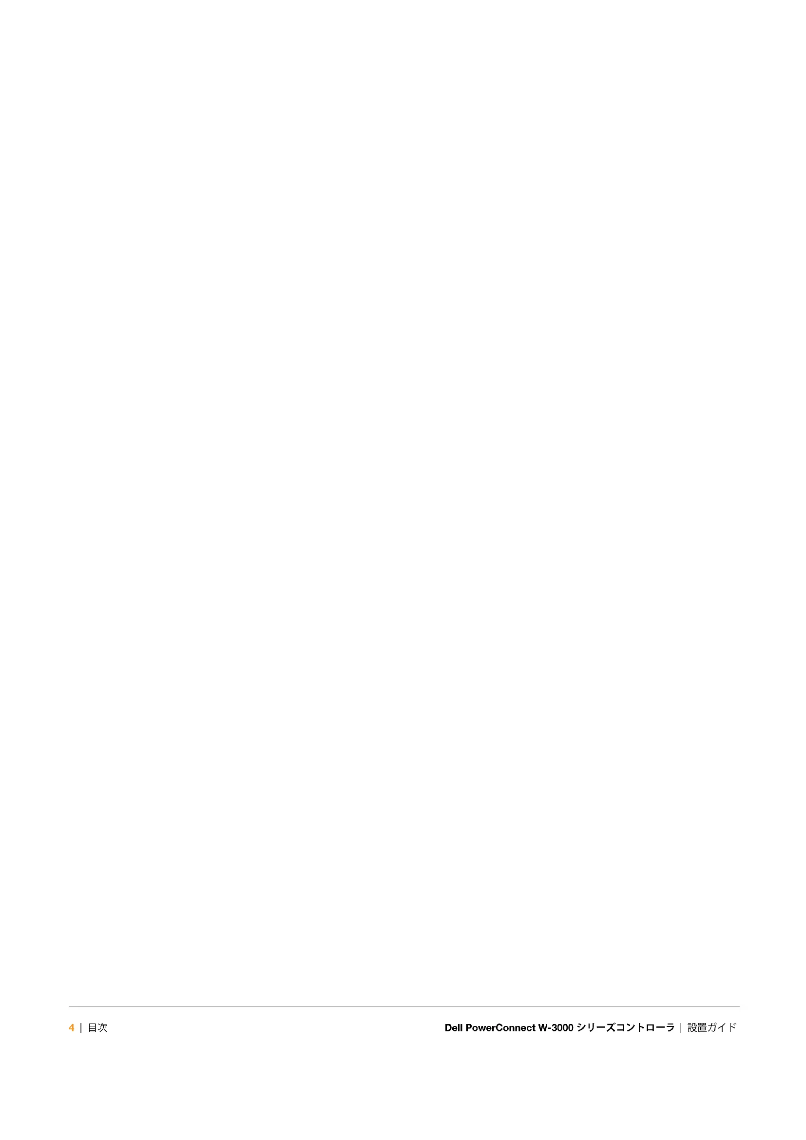 個人または企業による Aruba Networks, Inc. スイッチングプラットフォームおよびソフトウェアの使用によって生じるその他のベンダ の VPN クライアントデバイスが排除された場合、このアクションに対するその個人または企業の責任の完全な受諾を伴い、これらの ベンダの代理として著作権の侵害に関して Aruba Networks, Inc. に対して適用される可能性のあるすべての合法的なアクションを補償 するものとします。Dell PowerConnect W-3000 シリーズコントローラ | 設置ガイド 目次 | 3