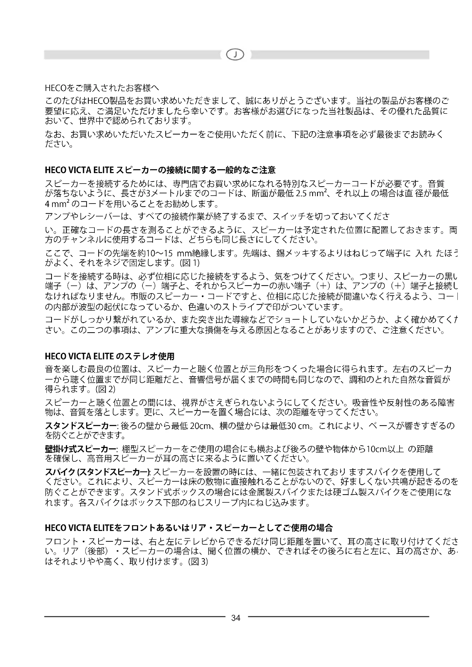 HECOをご購入されたお客様へ このたびはHECO製品をお買い求めいただきまして、誠にありがとうございます。当社の製品がお客様のご 要望に応え、ご満足いただけましたら幸いです。お客様がお選びになった当社製品は、その優れた品質に おいて、世界中で認められております。 なお、お買い求めいただいたスピーカーをご使用いただく前に、下記の注意事項を必ず最後までお読みく