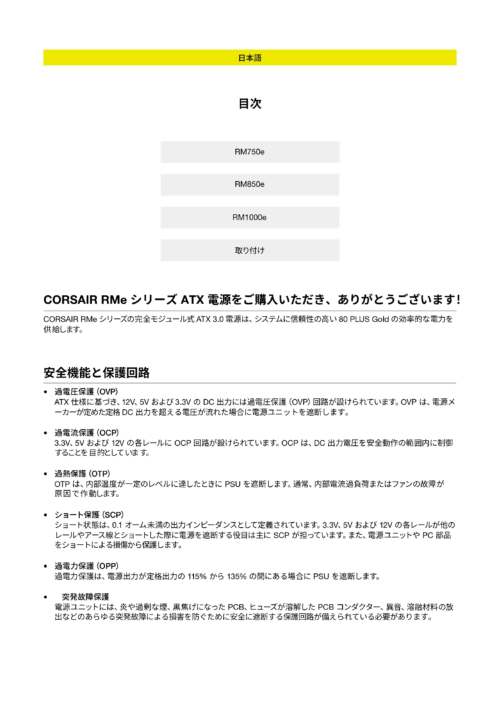 CORSAIR RMe シリーズ ATX 電源をご購入いただき、ありがとうございます! RM1000e RM850e RM750e 取り付け1