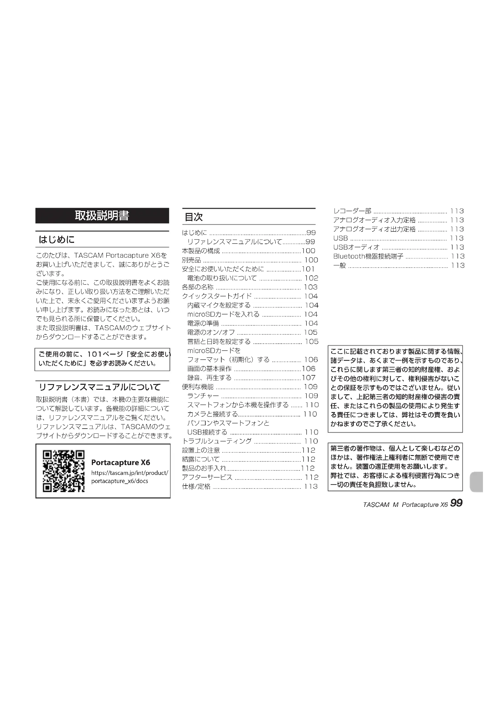 このたびは、TASCAM Portacapture X6を お買い上げいただきまして、誠にありがとうご