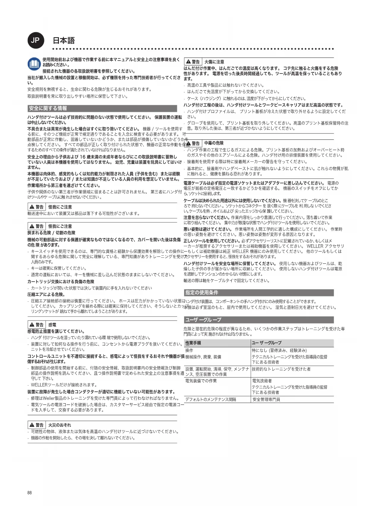- 修理はWeller製品のトレーニングを受けた専門員によって行わなければなりません。