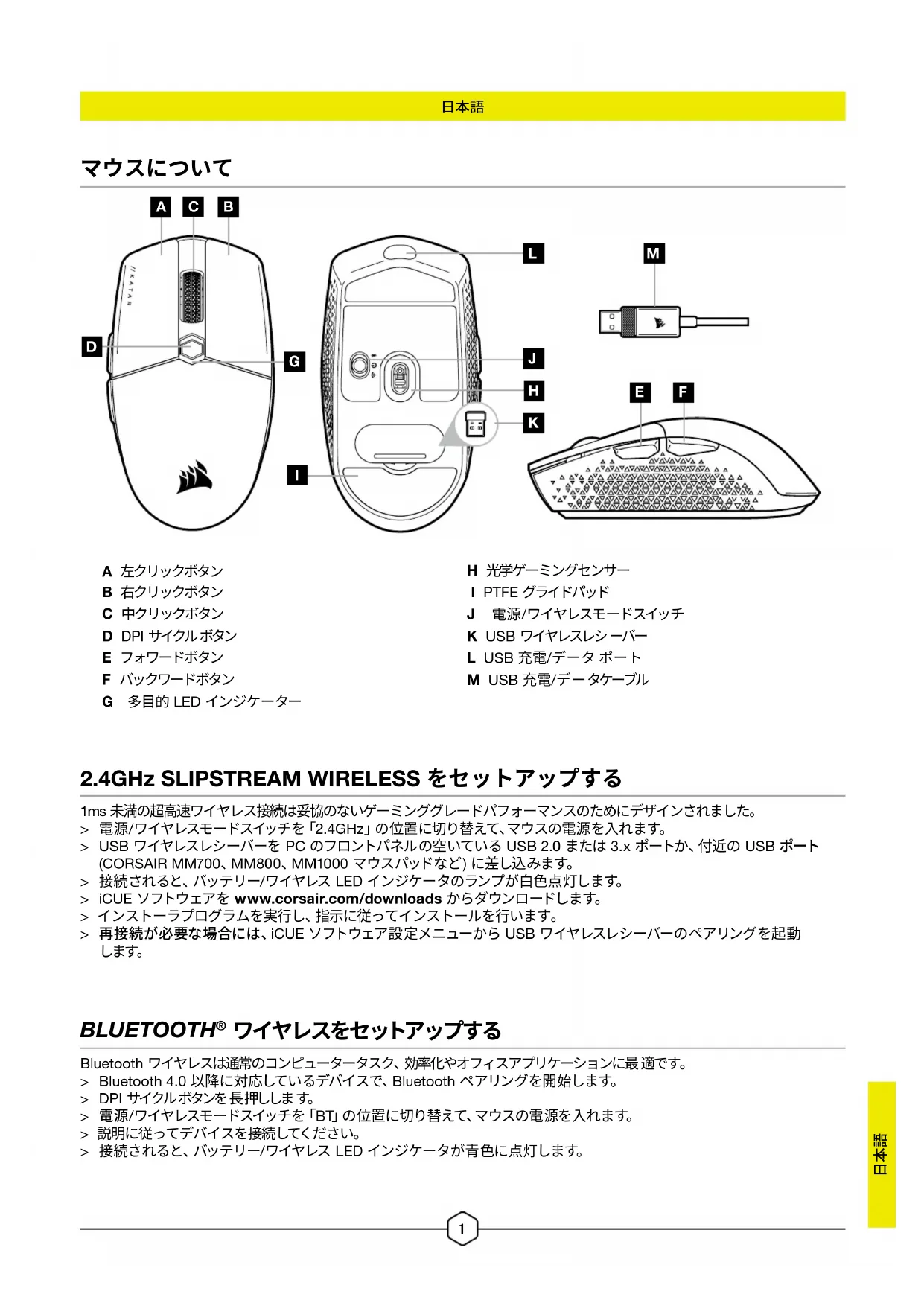 使用説明書 Katar Elite Wireless CORSAIR