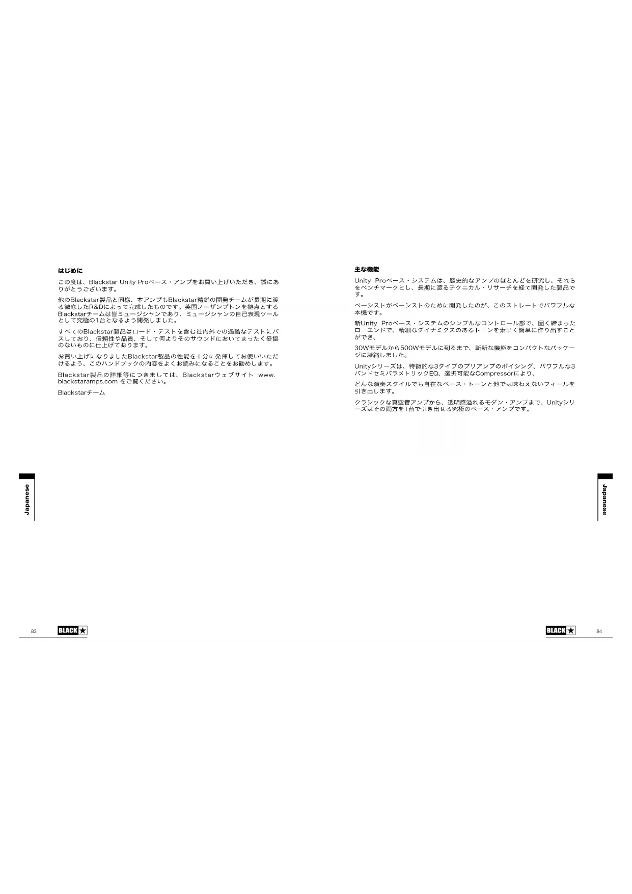 この度は、Blackstar Unity Proベース・アンプをお買い上げいただき、誠にあ