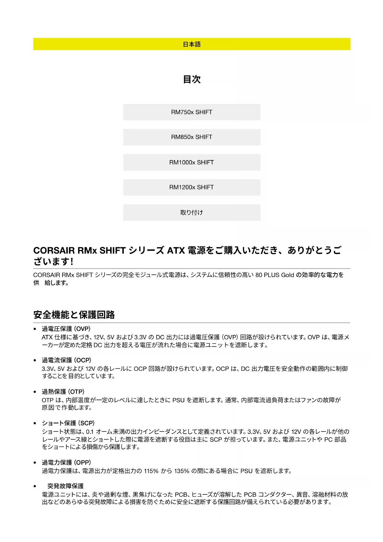 CORSAIR RMx SHIFT シリーズ ATX 電源をご購入いただき、ありがとうご