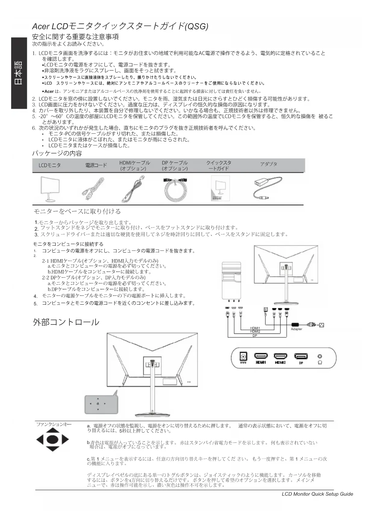 Acer LCD モニタクイックスタートガイド (QSG) 安全に関する重要な注意事項 次の指示をよくお読みください。