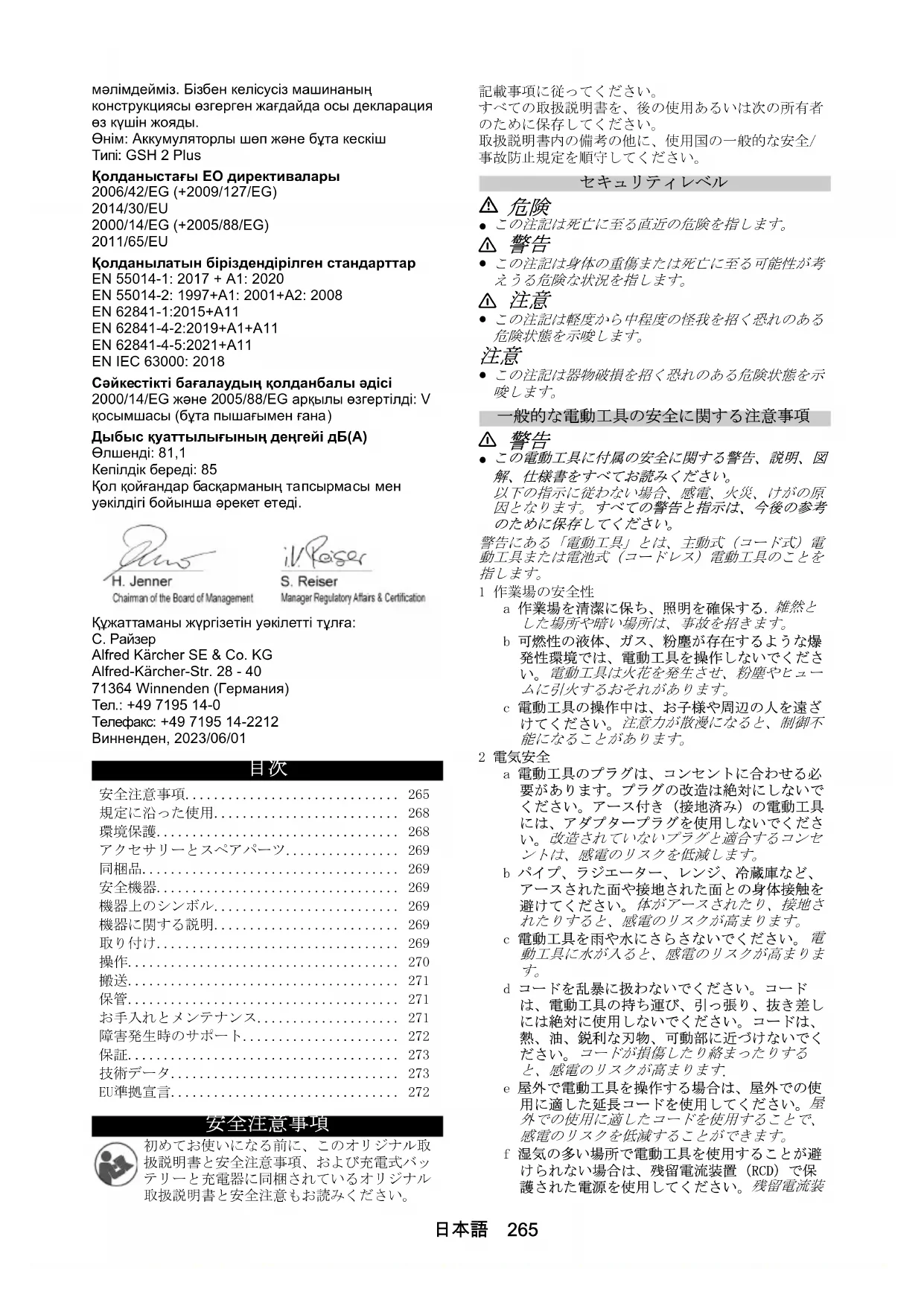 - EU準拠宣言 66 日本語 置を使用することで、感電のリスクを低減する p. 2722