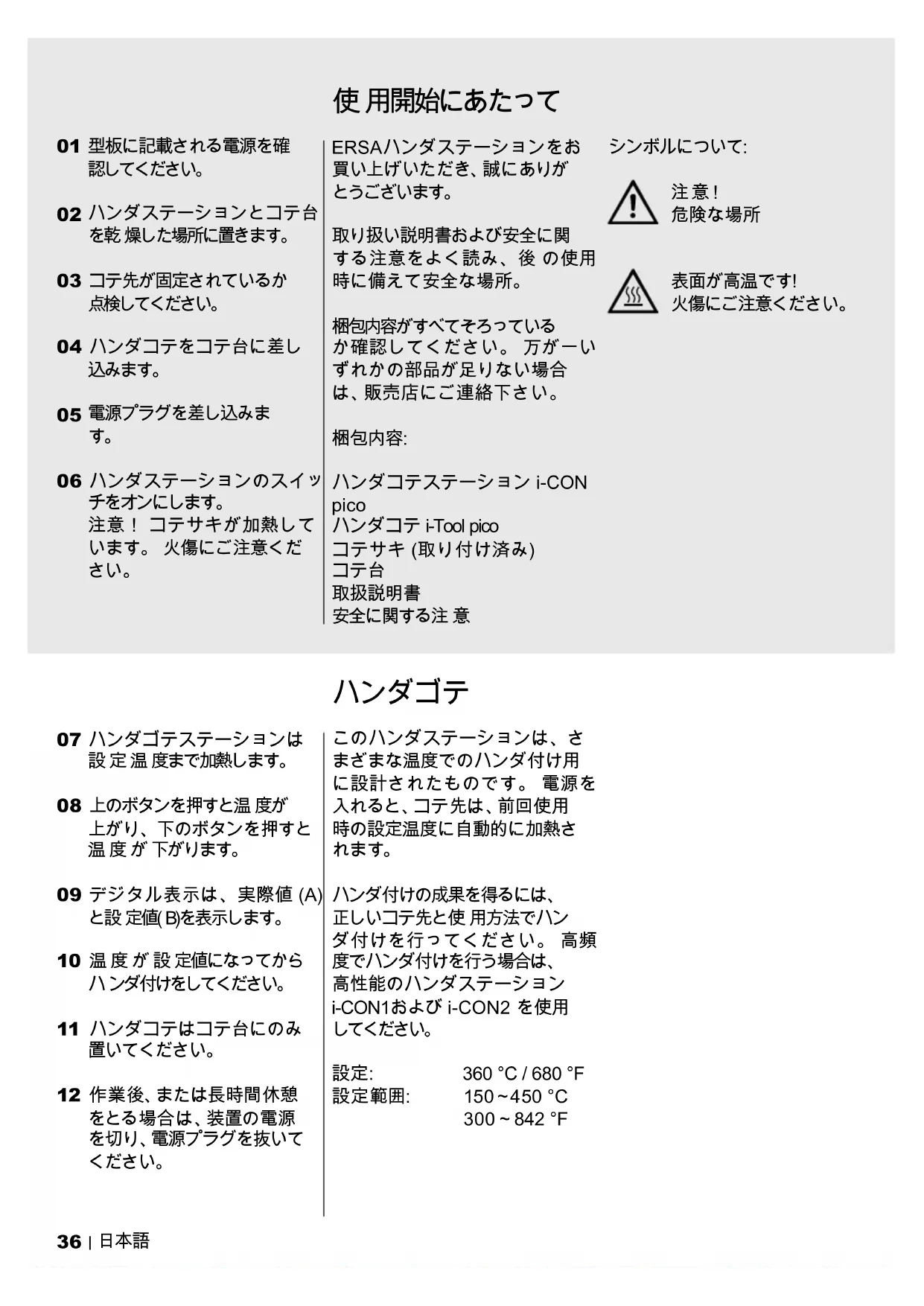 火傷にご注意ください。 ERSAハンダステーションをお 買 い 上 げ い た だ き 、誠 に あ り が