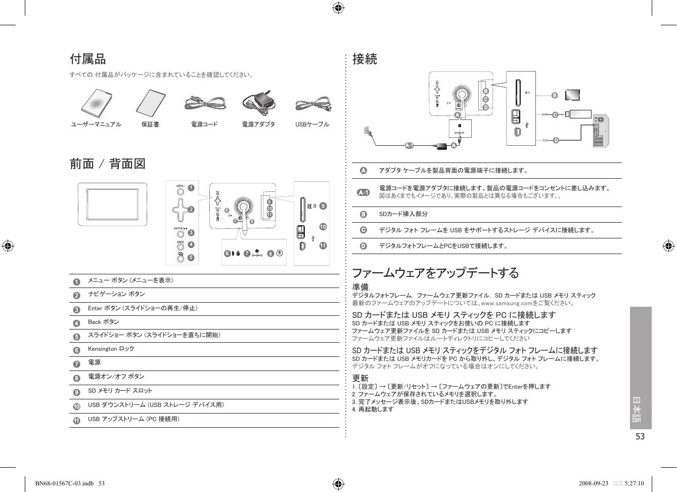 ファームウェアをアップデートする デジタルフォトフレーム, ファームウェア更新ファイル, SD カードまたは USB メモリ スティック 最新のファームウェアのアップデートについては、www.samsung.comをご覧ください。