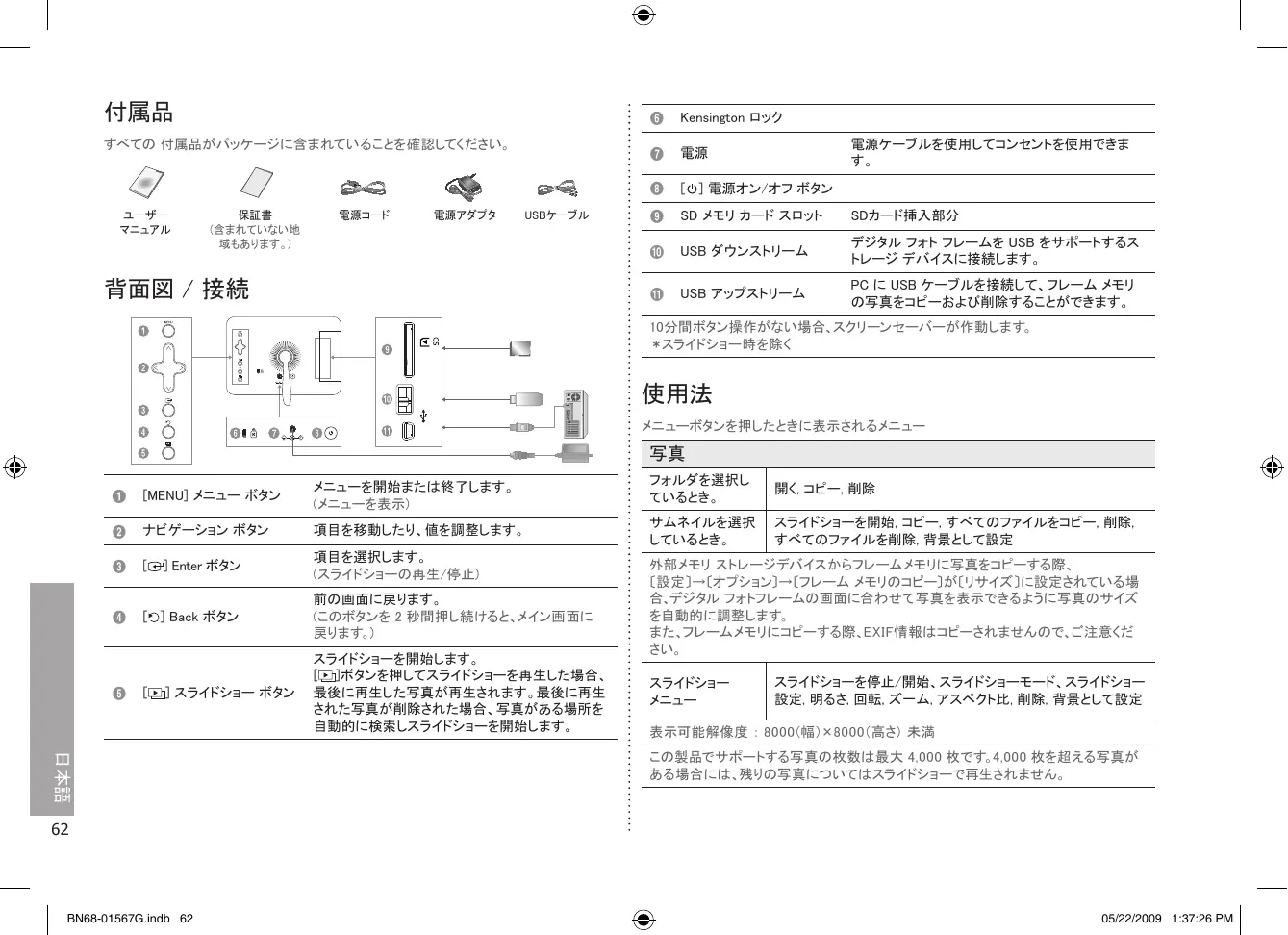 デバイスの取扱説明書をダウンロード デジタルフォトフレーム 無料でPDF形式で!マニュアルを見つける SPF-71E-W - SAMSUNG 電子デバイスをもとに戻しましょう。このページにはデバイスの使用に必要なすべての書類が掲載されています。 SPF-71E-W ブランド SAMSUNG.