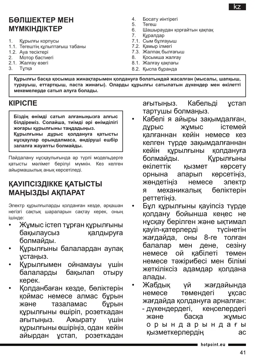 ПАЙДАЛАНУШЫ НҰСҚАУЛЫҒЫ KM 040 AB0 HOTPOINT