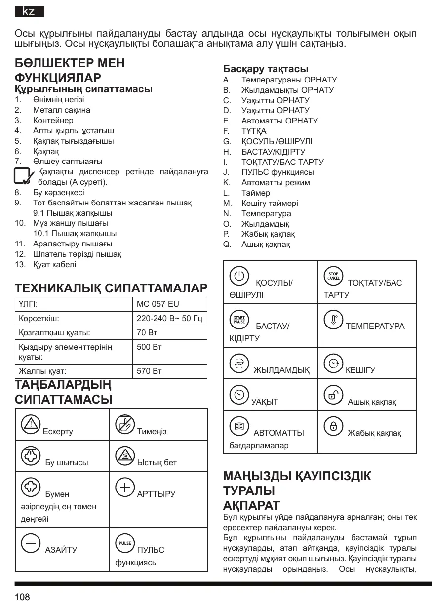 Téléchargez la notice de votre Микротолқынды пештер au format PDF gratuitement ! Retrouvez votre notice MC 057C AX0 - HOTPOINT et reprennez votre appareil électronique en main. Sur cette page sont publiés tous les documents nécessaires à l'utilisation de votre appareil MC 057C AX0 de la marque HOTPOINT.