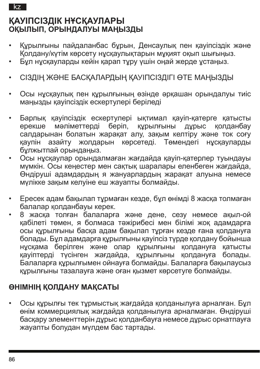 Cet appareil est conçu uniquement pour un usage domestique. Il n’est pas prévu pour un usage commercial. Le fabricant décline toute responsabilité en cas d’utilisation inappropriée ou de mauvais réglage des commandes.