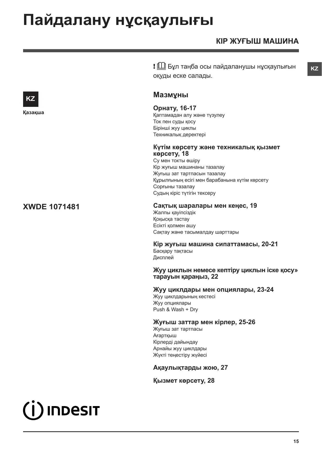 Téléchargez la notice de votre жууғыш кептіргіш au format PDF gratuitement ! Retrouvez votre notice XWDE 1071481X WKKK EU - INDESIT et reprennez votre appareil électronique en main. Sur cette page sont publiés tous les documents nécessaires à l'utilisation de votre appareil XWDE 1071481X WKKK EU de la marque INDESIT.