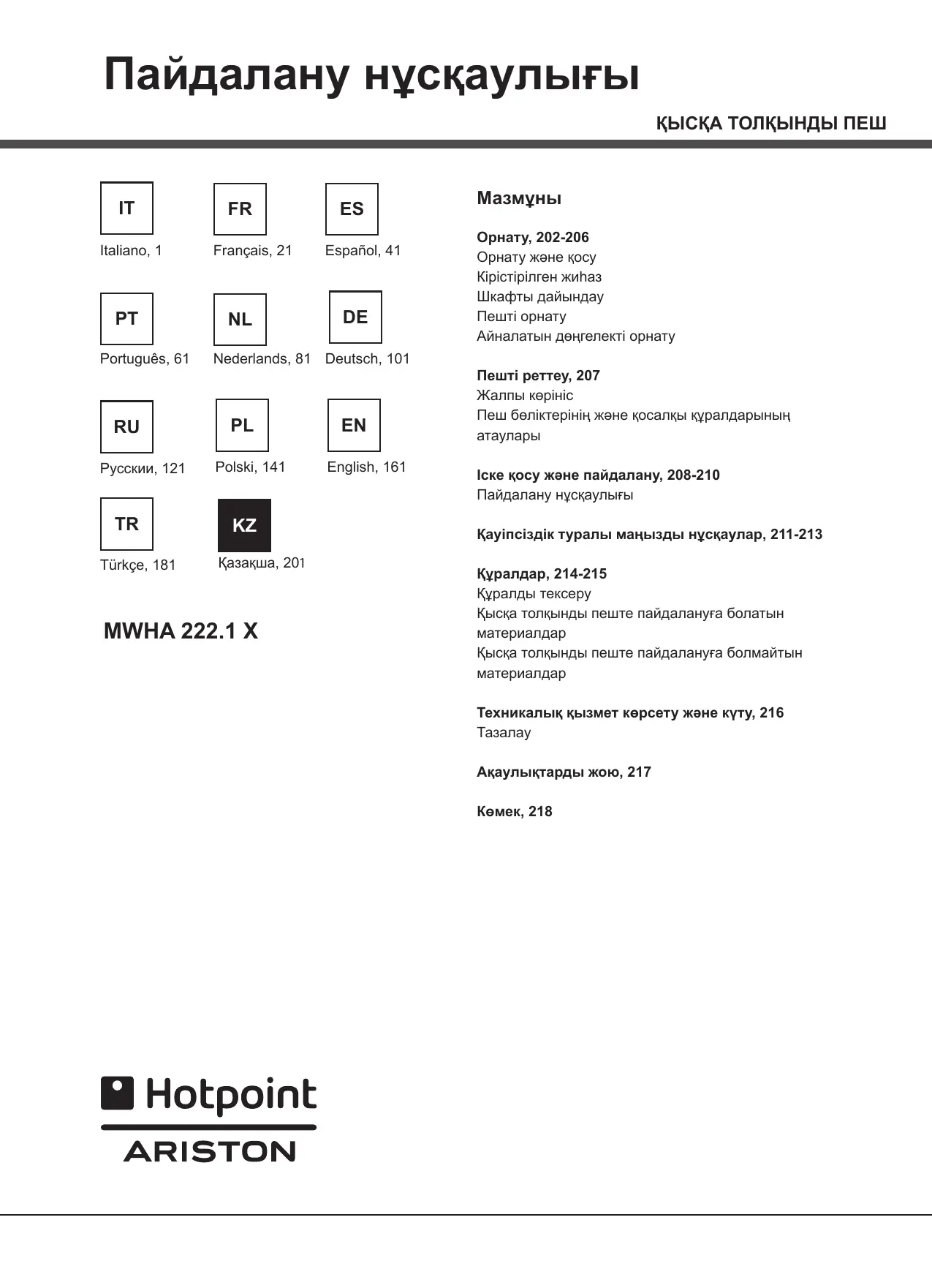 Téléchargez la notice de votre Микротолқынды пеш au format PDF gratuitement ! Retrouvez votre notice MD674IXHA - HOTPOINT et reprennez votre appareil électronique en main. Sur cette page sont publiés tous les documents nécessaires à l'utilisation de votre appareil MD674IXHA de la marque HOTPOINT.