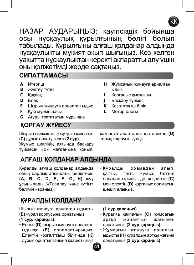AVANT LA PREMIÈRE UTILISATION Nous vous recommandons de laver les pièces amovibles (A, B, C, D, E, F, G, H) avant la première utilisation (voir le chapitre « Nettoyage et entretien »).