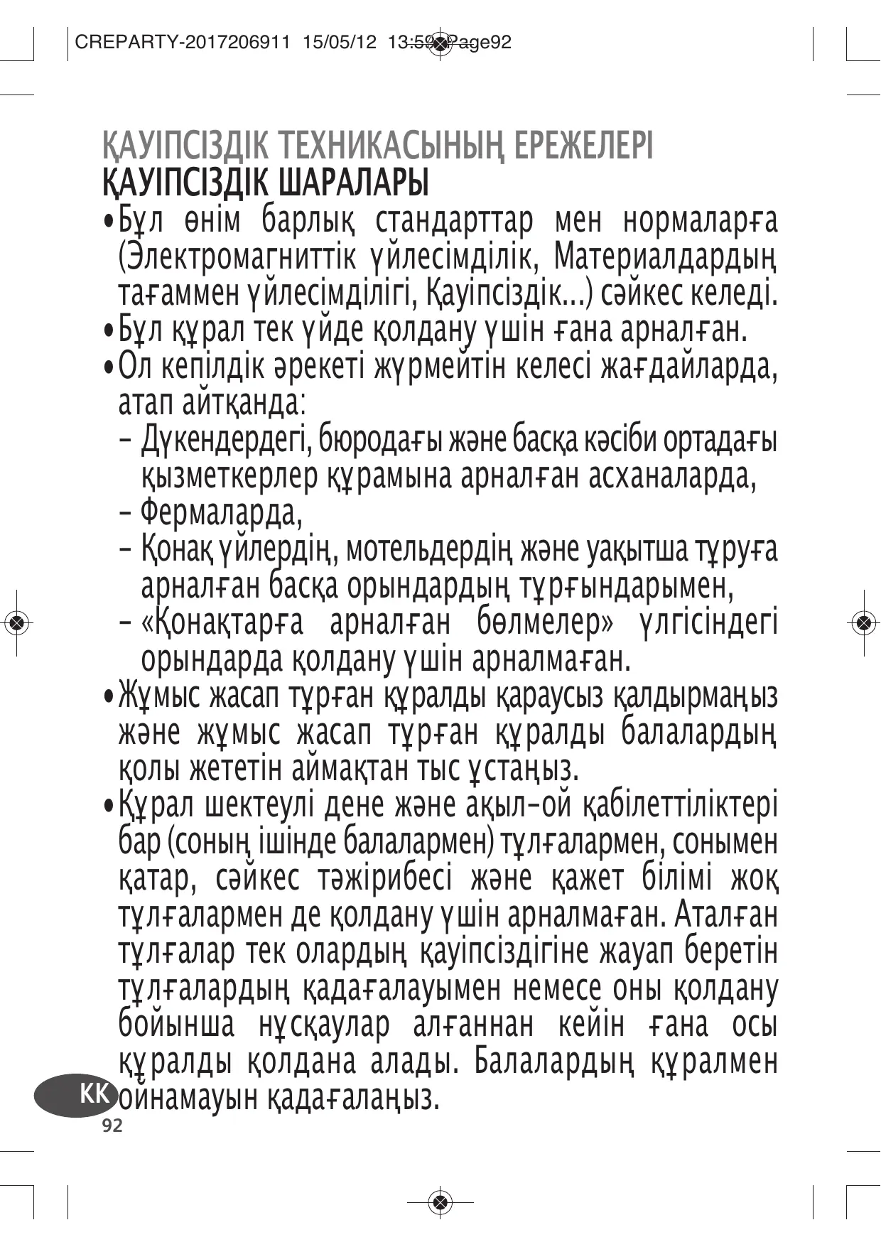 Téléchargez la notice de votre Креп жасағыш au format PDF gratuitement ! Retrouvez votre notice CREP PARTY 6 PY559112 - TEFAL et reprennez votre appareil électronique en main. Sur cette page sont publiés tous les documents nécessaires à l'utilisation de votre appareil CREP PARTY 6 PY559112 de la marque TEFAL.
