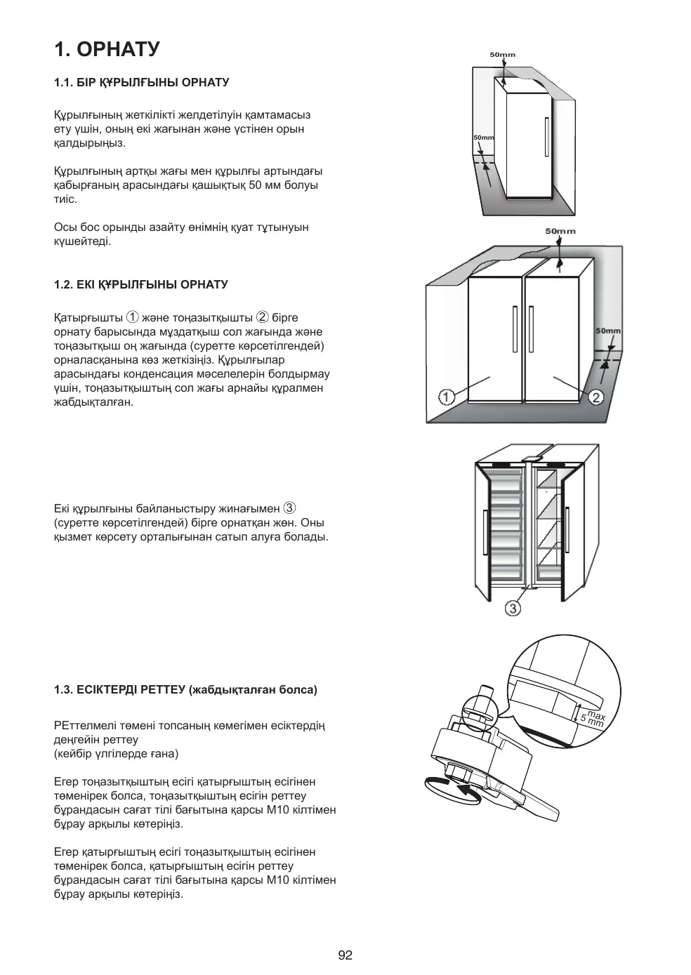 1.2. INSTALLATION DE DEUX APPAREILS Durant l'installation du congélateur 1 et du réfrigérateur 2 , assurez-vous que le congélateur est placé à gauche et le réfrigérateur à droite (comme illustré sur l'image). Sur le côté gauche du réfrigérateur se trouve un dispositif spécial permettant d'éviter les problèmes de condensation entre les appareils.