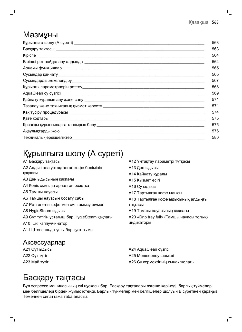 576 Қазақша сатып алуға болады. Қосалқы бөлшектердің толық тізімін онлайн табу үшін, машинаның үлгі нөмірін енгізіңіз. Қызмет есігі ішінен үлгі нөмірін таба аласыз. Техникалық қызмет өнімдері және түр нөмірлері: - Қақ түсіру ерітіндісі CA6700 - AquaClean сүзгісі CA6903 - Қайнату құралының майы HD5061 - Кофе майын кетіргіш таблеткалар CA6704 - Сүт тізбегін тазалау құралы CA6705 - Техникалық қызмет көрсету жинағы CA6707