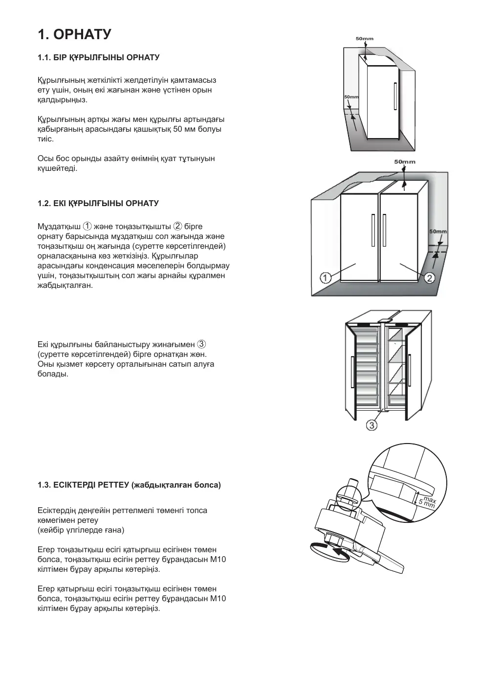 1.2. INSTALLATION DE DEUX APPAREILS Durant l'installation du congélateur 1 et du réfrigérateur 2 , assurez-vous que le congélateur est placé à gauche et le réfrigérateur à droite (comme illustré sur l'image). Sur le côté gauche du réfrigérateur se trouve un dispositif spécial permettant d'éviter les problèmes de condensation entre les appareils.