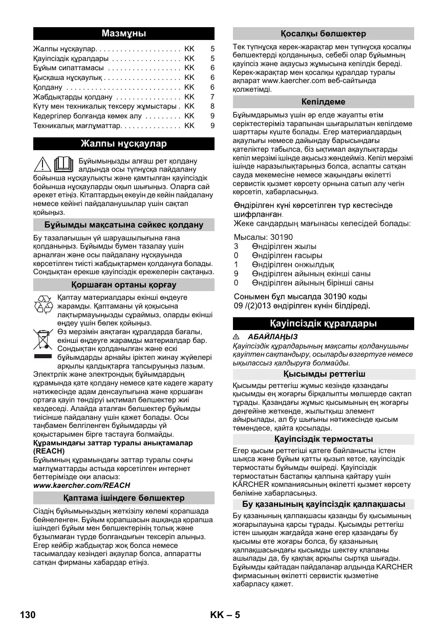 Si el regulador de presión está averiado y el aparato se sobrecalienta, será el termostato de seguridad el que se ocupe de desconectar el aparato. Para el rearme del termostato de seguri-dad, póngase en contacto con el Servicio Técnico de Kärcher.