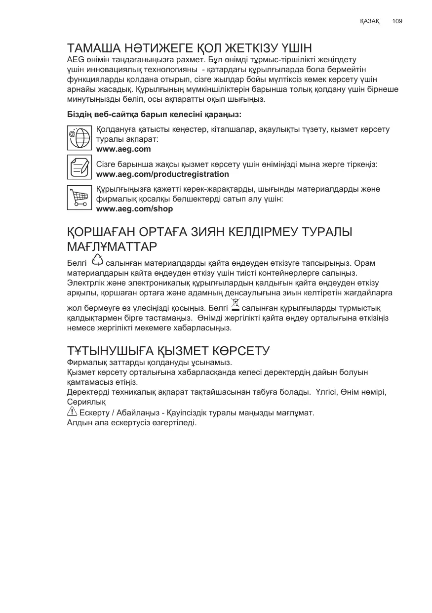 ПАЙДАЛАНУШЫ НҰСҚАУЛЫҒЫ DPB0601W AEG-ELECTROLUX