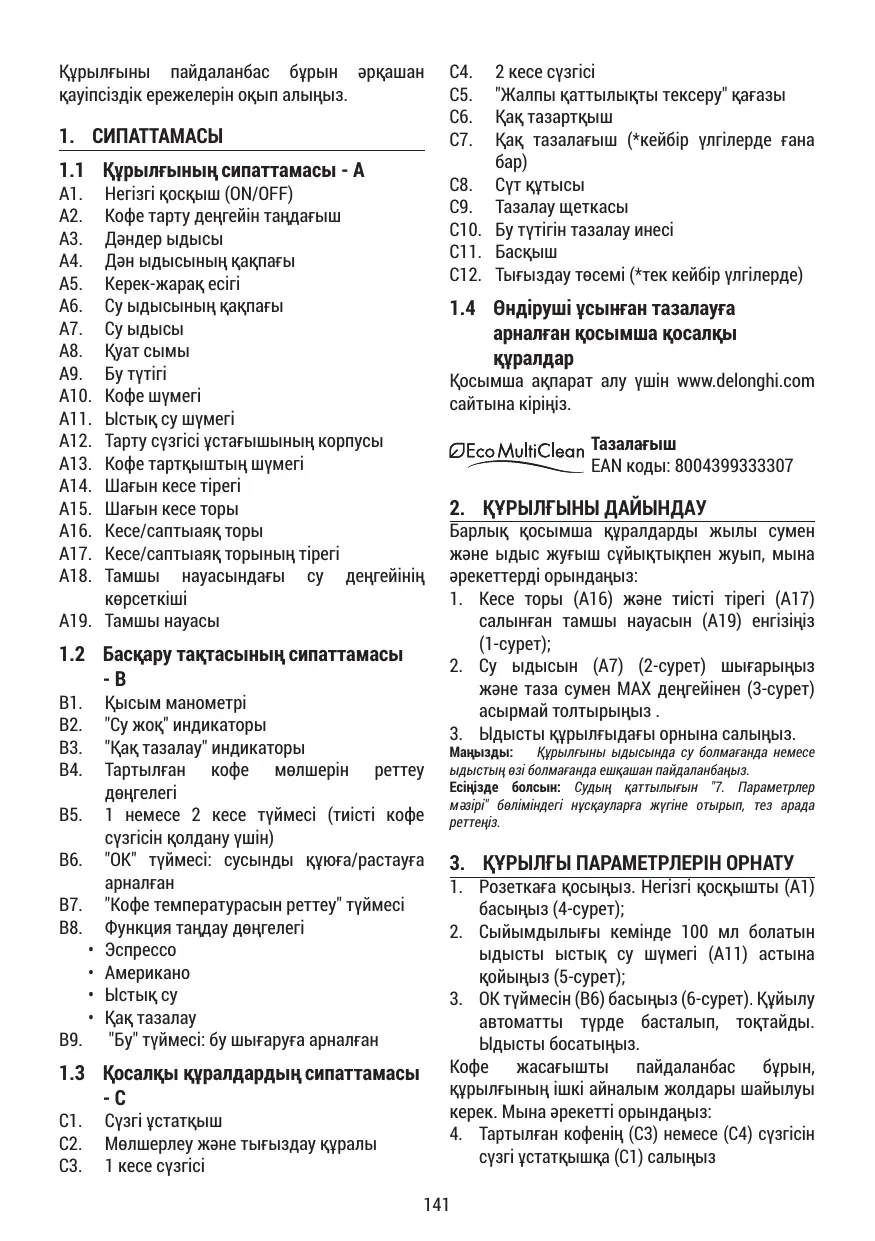 Қосымша ақпарат алу үшін www.delonghi.com сайтына кіріңіз. Тазалағыш EAN коды: 8004399333307