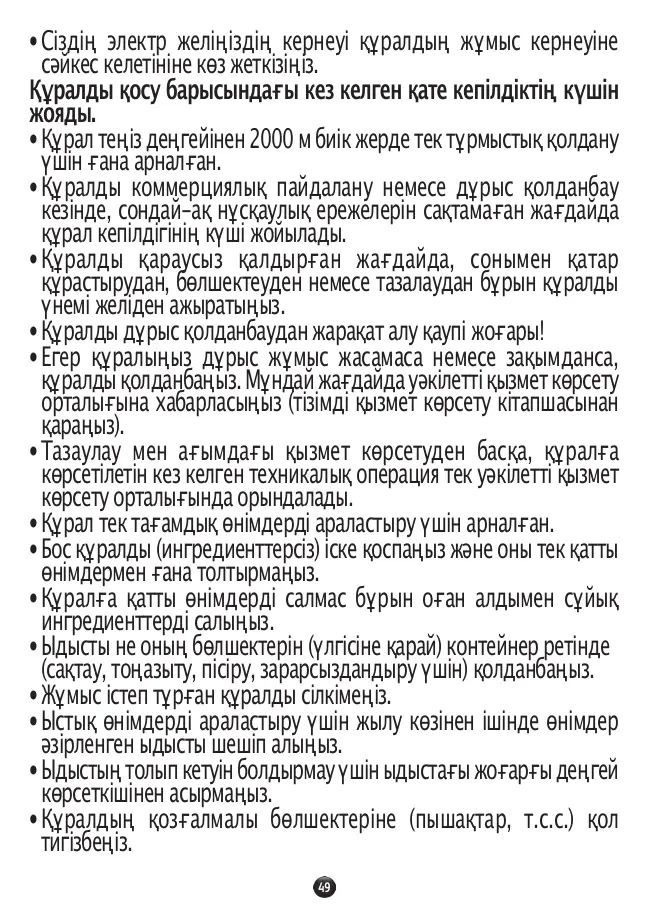 Toute erreur de branchement annule la garantie. • Votre appareil est destiné uniquement à un usage domestique à l’intérieur de la maison et à une altitude inférieure à 2000m. • La garantie ne s’appliquera pas en cas d’utilisation commerciale, inappropriée, ou non respect de la notice. • Toujours déconnecter l’appareil de l’alimentation si on le laisse sans surveillance et avant montage, démontage ou nettoyage. • Attention aux risques de blessure en cas de mauvaise utilisation de l’appareil. • N’utilisez pas votre appareil s’il ne fonctionne pas correctement ou s’il a été endommagé. Dans ce cas, adressez-vous à un centre service agréé (voir liste dans le livret service). • Toute intervention autre que le nettoyage et l’entretien usuel par le client doit être effectuée par un centre service agréé. • N’utilisez jamais cet appareil pour mélanger ou mixer d’autres éléments que des ingrédients alimentaires. • N’utilisez jamais le bol mixeur sans ingrédient ou avec des ingrédients solides uniquement. • Versez toujours les ingrédients liquides en premier dans le bol mixeur avant d’ajouter les ingrédients solides. • Ne pas utiliser le bol mixeur ou les accessoires (selon modèle) comme récipients (conservation, congélation, cuisson, stérilisation) • Afin d’éviter tout débordement, ne pas dépasser le niveau maximum du bol lorsque celui-ci est indiqué. • N e touchez jamais les pièces en mouvement (couteaux…). • Les lames du couteau du bol mixeur et des accessoires (selon modèle) sont très coupantes: manipulez-les avec précaution pour ne pas vous blesser lors du versage, du montage/démontage des 1