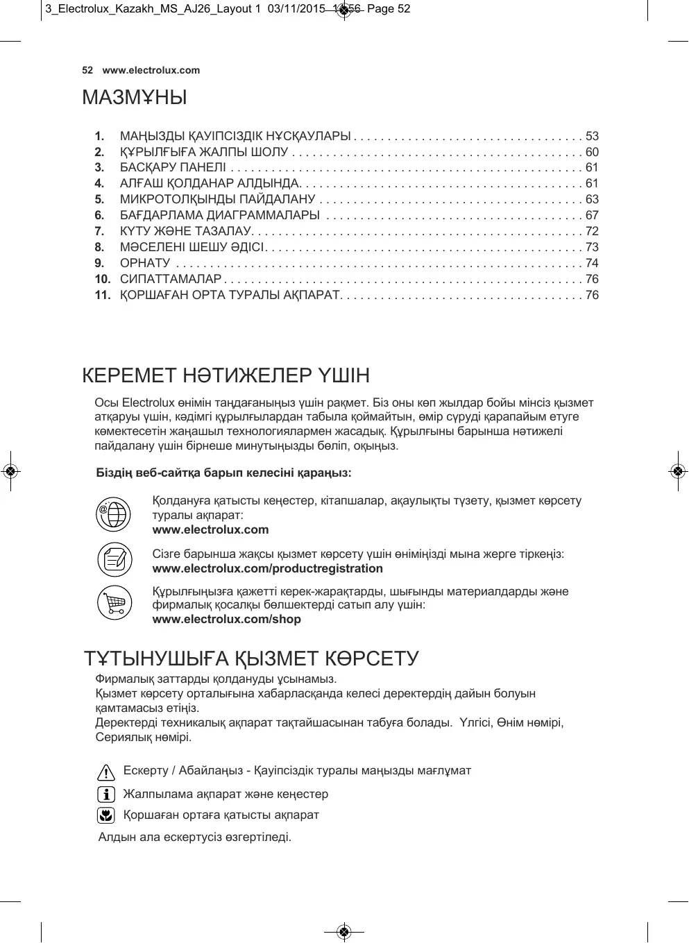 ПАЙДАЛАНУШЫ НҰСҚАУЛЫҒЫ EMS260040K ELECTROLUX