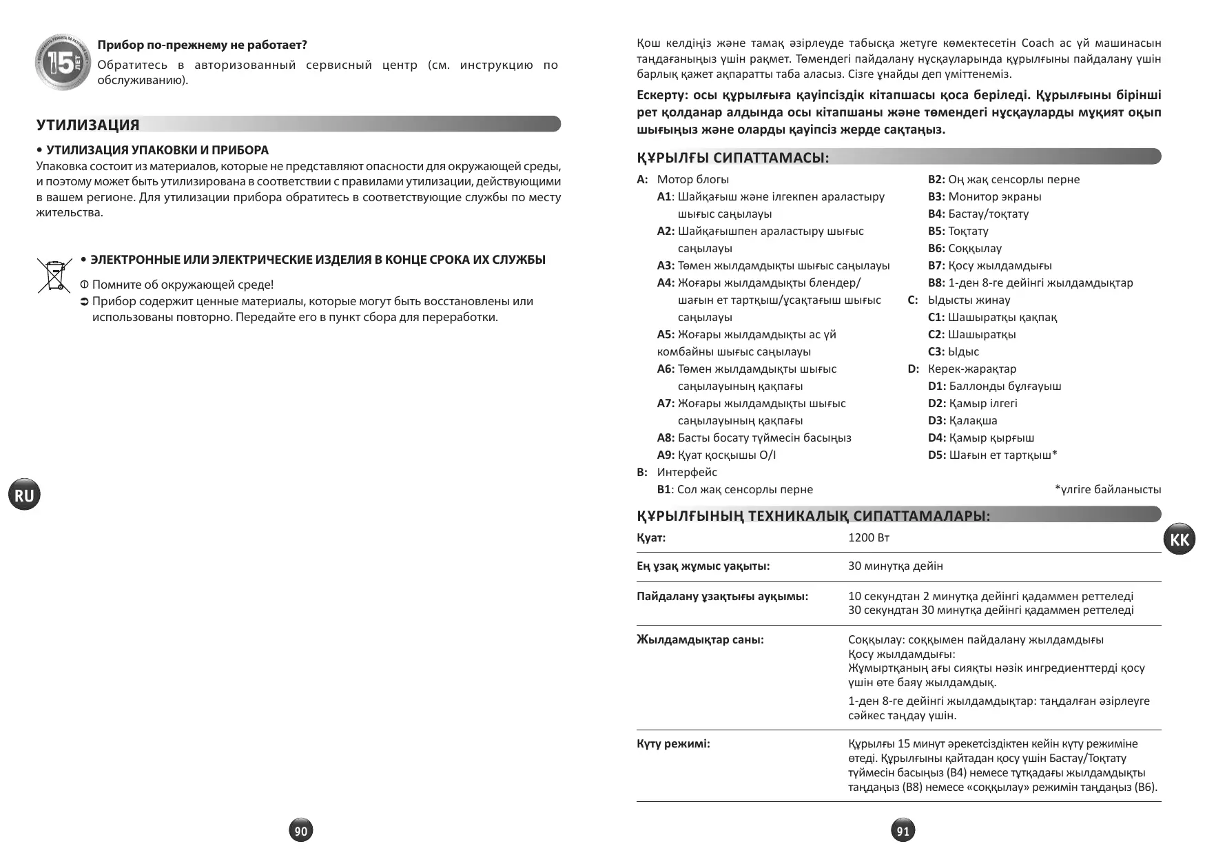 Pour le rallumer, appuyez sur « Start/Stop » (B4) ou sélectionnez une vitesse (B8) ou sélectionnez le mode « Pulse », à l’aide du bouton (B6).