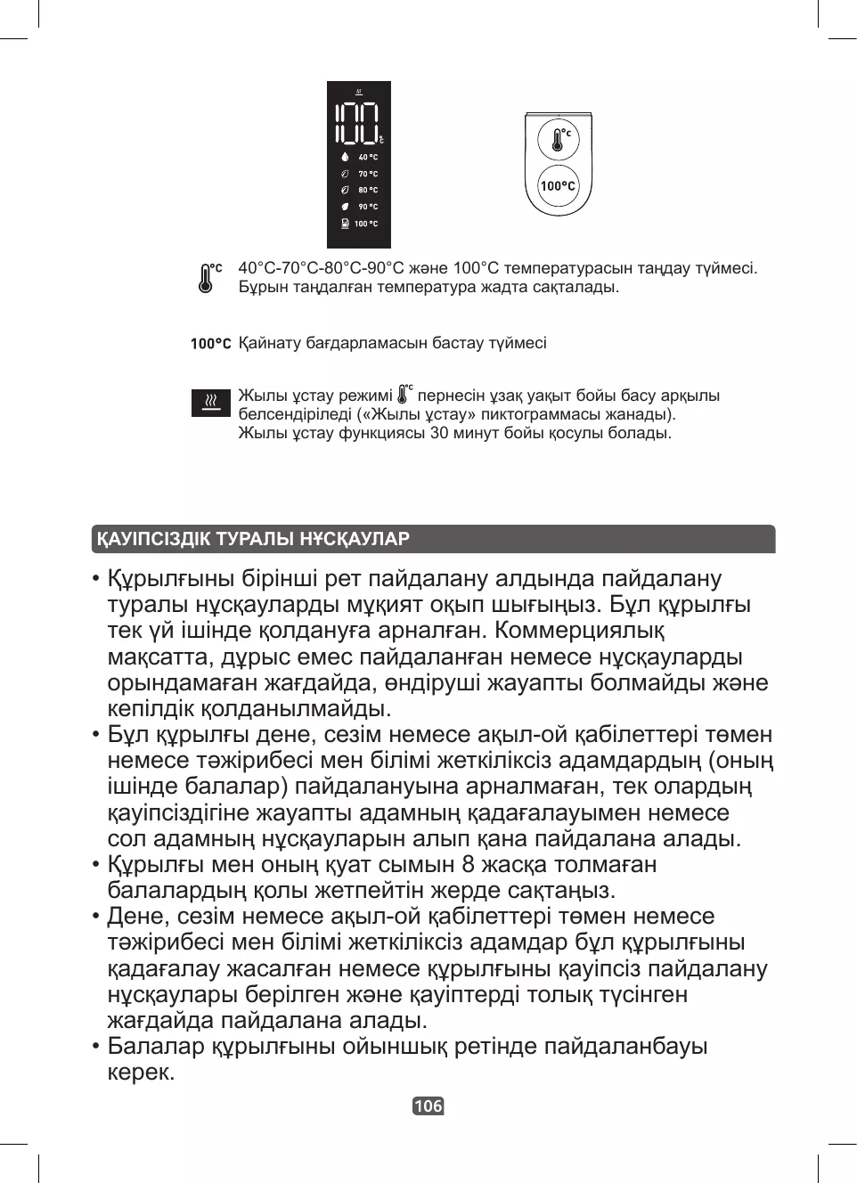 ohutult kasutama ning nad mõistavad seadme kasutamisega kaasnevaid ohte. Lapsed ei tohi seadet puhastada ja hooldada, välja arvatud üle 8 aasta vanused lapsed, keda juhendab täiskasvanu.