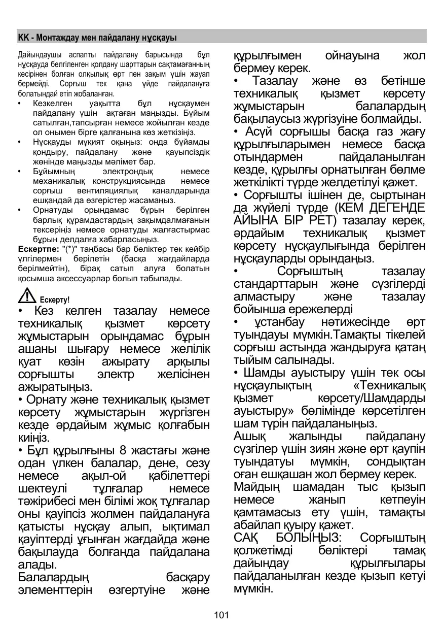 • Il est important de conserver ce livret pour pouvoir le consulter à tout moment. En cas de vente, de cession ou de déménagement, assurez-vous que la notice d'utilisation l'accompagne. • Veuillez lire attentivement les instructions, vous trouverez des informations importantes sur l'installation, le mode d'emploi et la sécurité. • Ne pas effectuer des modifications électriques ou mécaniques sur le produit ou sur les conduits d’évacuation. • Avant d'installer l'appareil, vérifiez qu’il n’y a aucun composant endommagé. Sinon, contactez votre revendeur et ne continuez pas l'installation. Remarque : Les pièces portant le symbole "(*)" sont des accessoires optionnels fournis uniquement avec certains modèles ou des pièces non fournies, à acheter. Attention