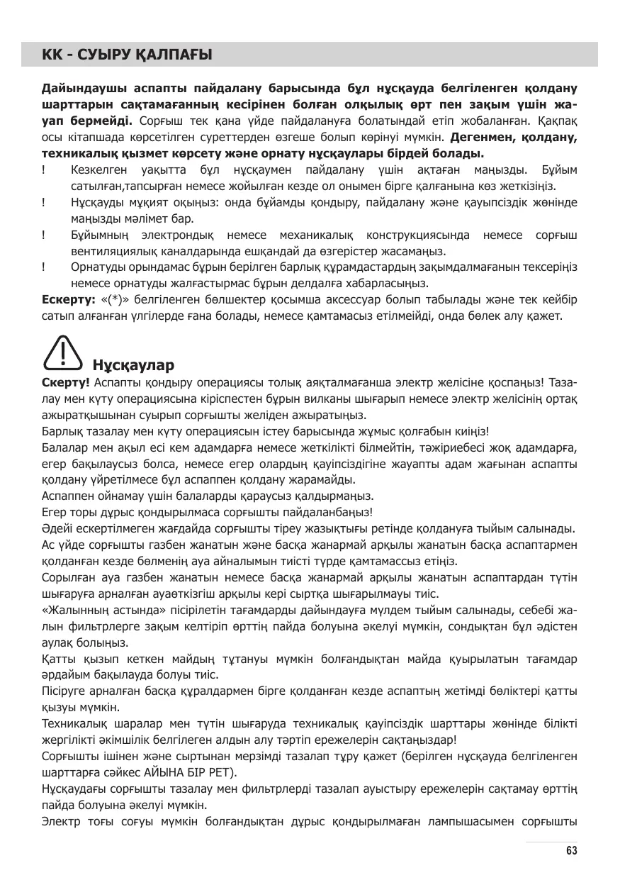 ATTENTION: Il y a risque d’incendie si vous ne respectez pas les instructions concernant le nettoyage de l’appareil et le remplacement ou le nettoyage du filtre. La responsabilité du constructeur ne peut en aucun cas être engagée dans le cas d’un endommagement du moteur ou d’incendie liés à un entretien négligé ou au non respect des consignes de sécurité précédemment mentionnées.