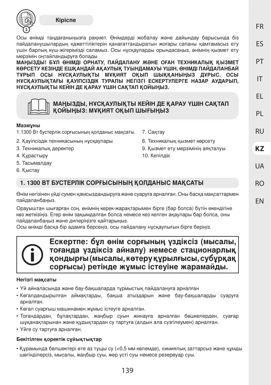 MODE D'EMPLOI 1300 WT 50 SM5I-3 6000 L/H STERWINS