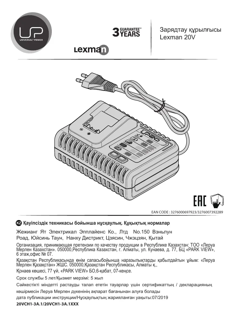 MODE D'EMPLOI 20VCH1-3A.1 20VCH1-3A.19 20V Charger STERWINS