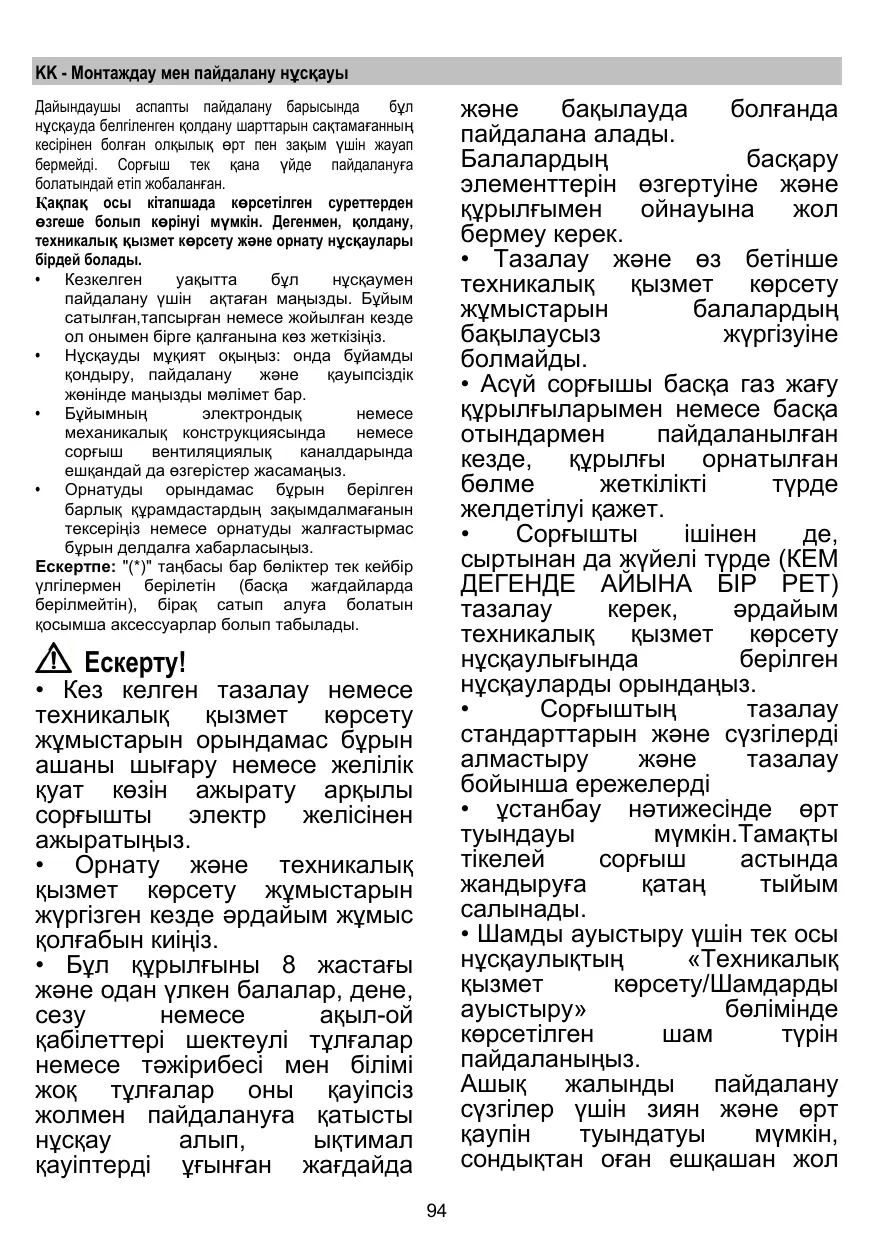 + La hotte ne doit JAMAIS être utilisée comme une surface d'appui, sauf indication expresse.