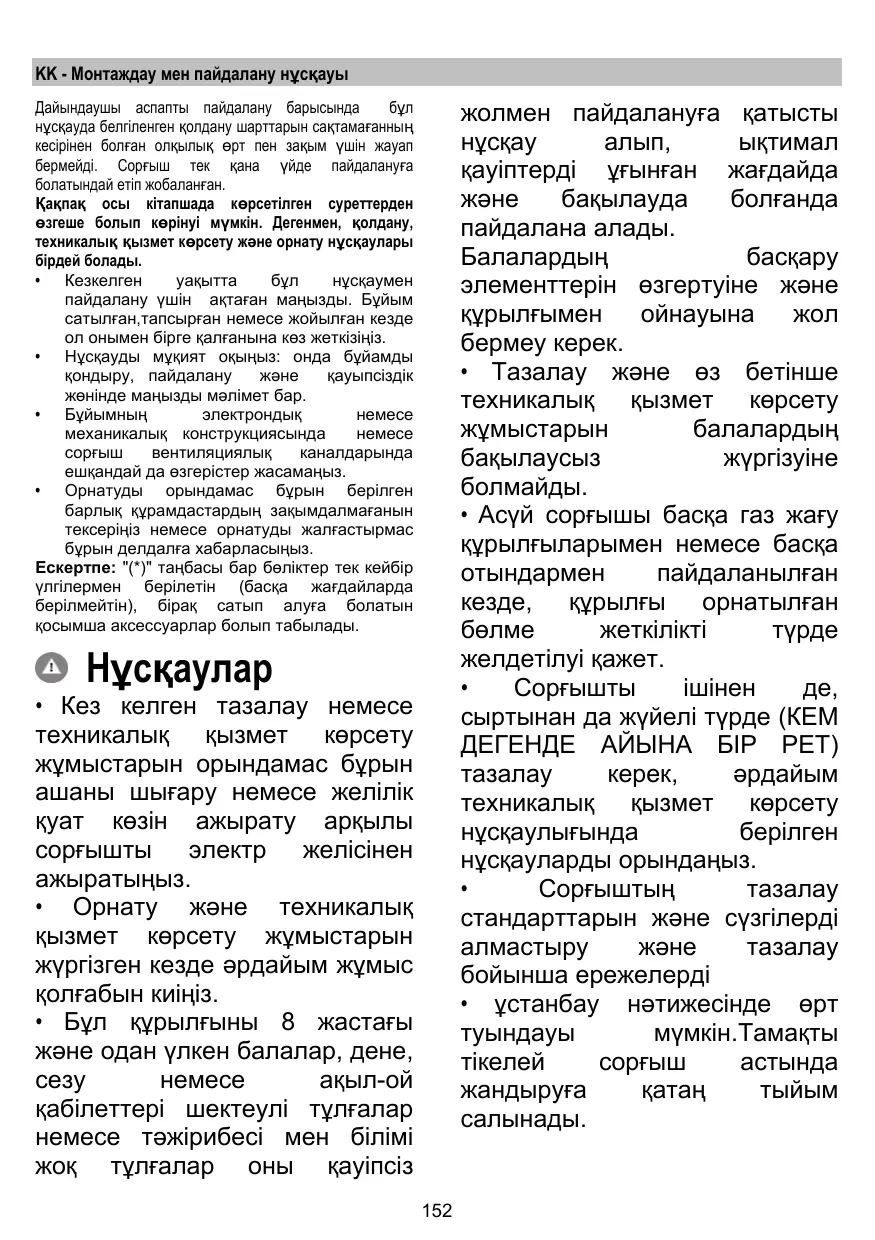 + La pièce doit avoir une aération suffisante lorsque la hotte est utilisée conjointement avec d'autres appareils fonctionnant au gaz ou autres combustibles.