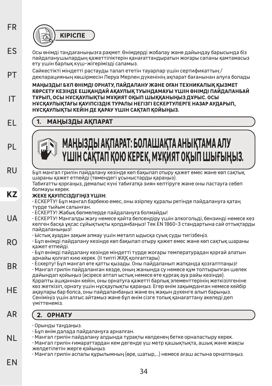 Pour votre sécuri * ATTENTION! Ce brasero n'est pas un barbecue, il est fortement interdit de l'utiliser comme moyen de cuisson.