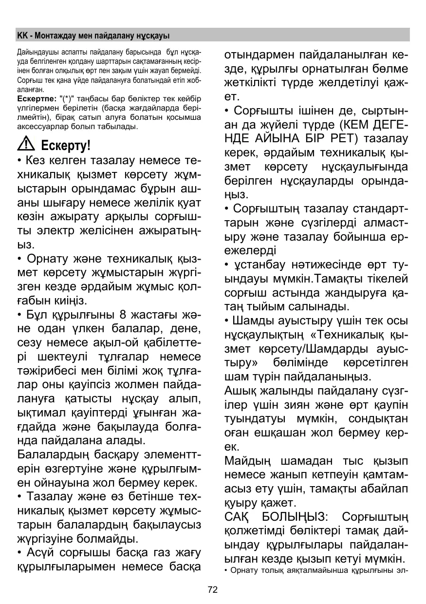 + La hotte ne doit JAMAIS être utilisée comme une surface d'appui, sauf indication expresse.
