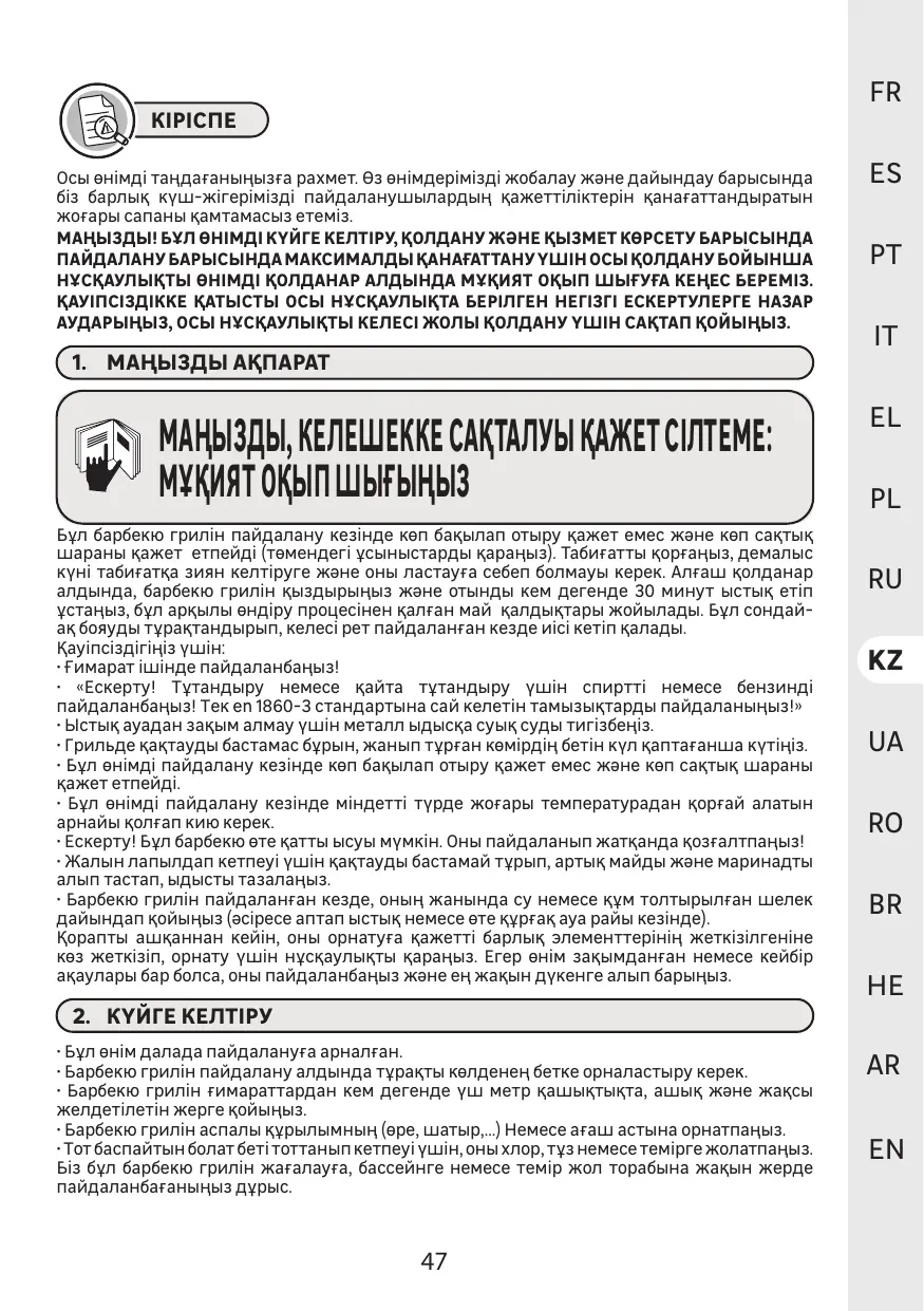 - ATTENTION ! Ne pas utiliser d'alcool, d'essence ou tout autre liquide analogue pour allumer ou réactiver Le barbecue ! Utiliser uniquement des allume-feu conformes à l'EN 1860-31