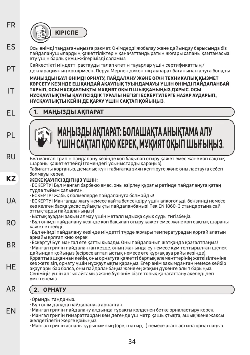 - ATTENTION! Ce brasero n'est pas un barbecue, il est fortement interdit de l'utiliser comme moyen de cuisson.