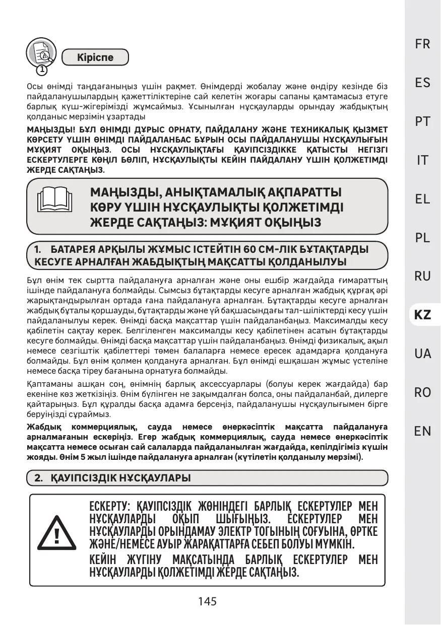 40VHT2-60.1 - Қоршау кескіштері STERWINS - Тегін пайдаланушы нұсқаулығы